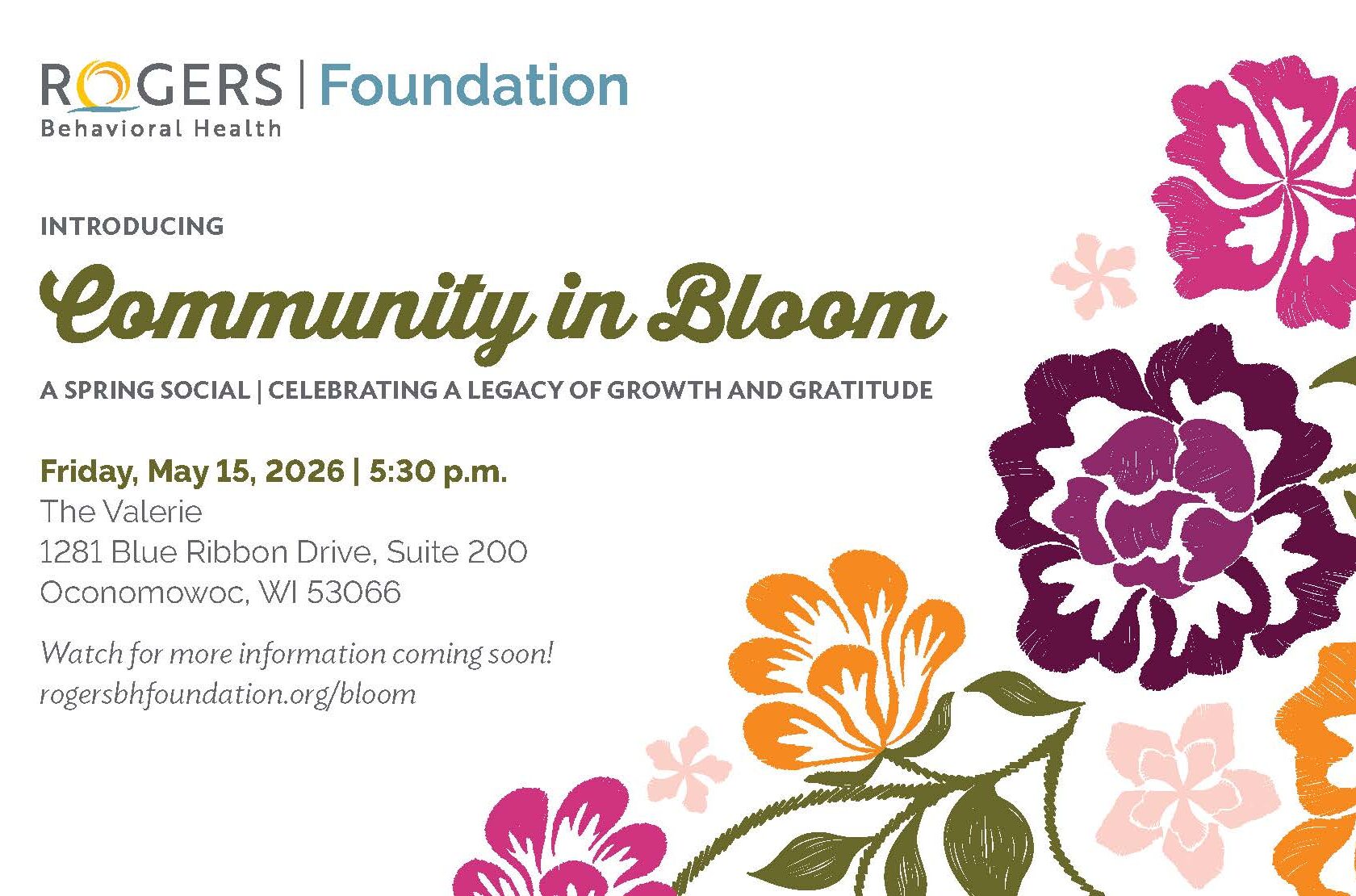 On Friday, May 15, we invite you to join us for Community in Bloom, a new spring gathering celebrating the people, partners, and supporters who help mental health and wellness flourish across Lake Country.